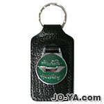 英国直輸入の高級タイプキーホルダーです。本革製の本体部分にメタル製のロゴが付いています。皮革部分は厚めの型押しです。メタルエンブレム部分はベイクドエナメル ( 七宝焼き ) でロゴデザインなどが施されており、高級感があります。